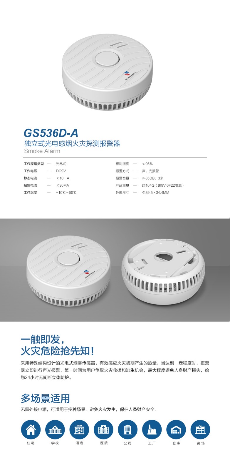GS119D獨立式感煙火災探測報警器
