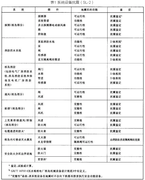核電廠的火災自動報警系統需滿足相關質保等級的要求并且系統在運行階段要接受定期試驗檢查,另外,所有設備應經過抗震試驗鑒定并能承受極限安全地震(SL-2)荷載,且保證其可運行性(見下表1)。
